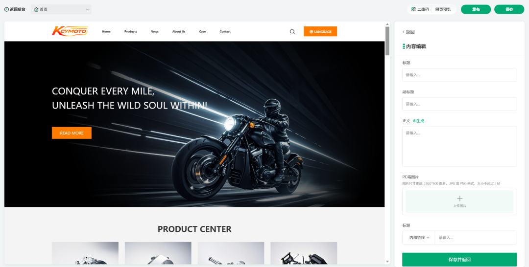 在内容创作的针对性上,AI建站的协同优势同样突出:新闻版块可通过关键词生成全文,结合AI搜索算法与用户搜索偏好,搭配基础SEO关键词,助力站点提升搜索排名;产品板块可自动生成产品介绍、核心优势与规格参数,清晰呈现产品亮点;案例板块则贴合企业行业属性,生成契合实际的案例内容,增强品牌可信度,提升案例曝光度。
