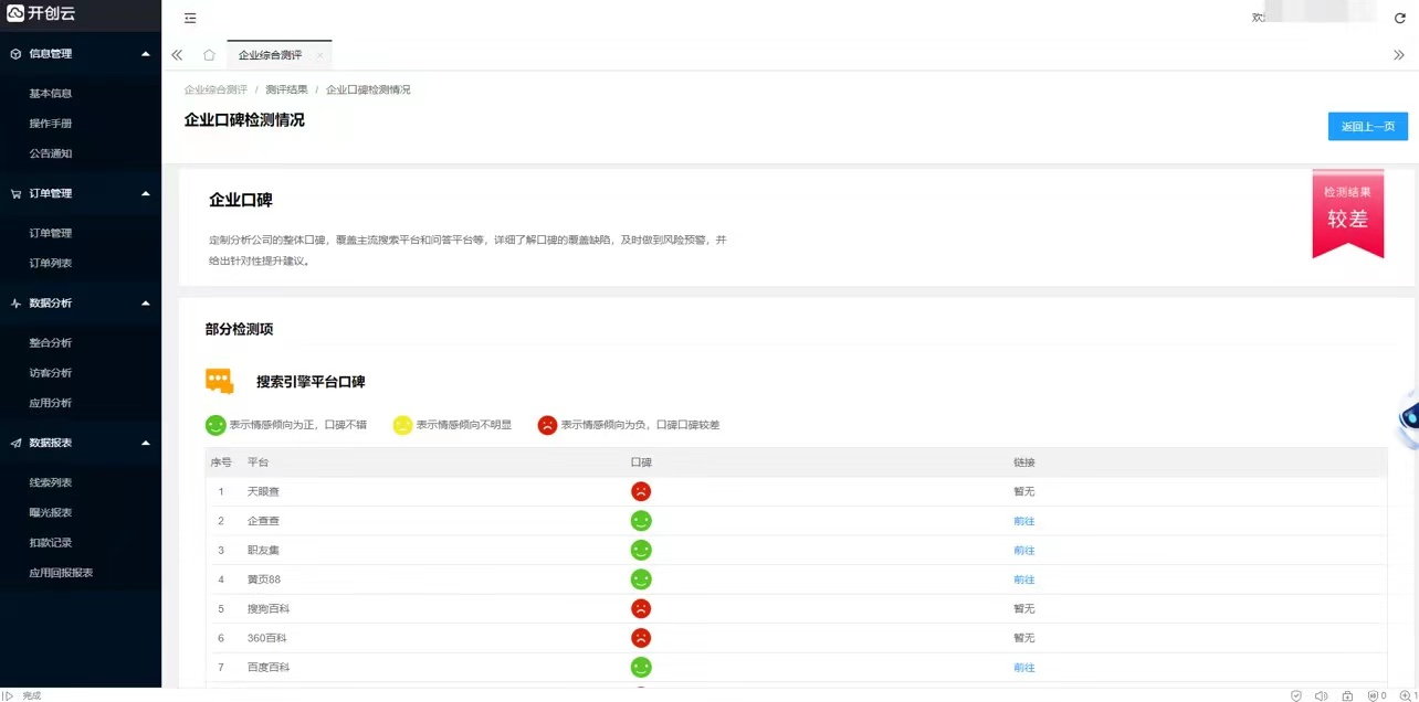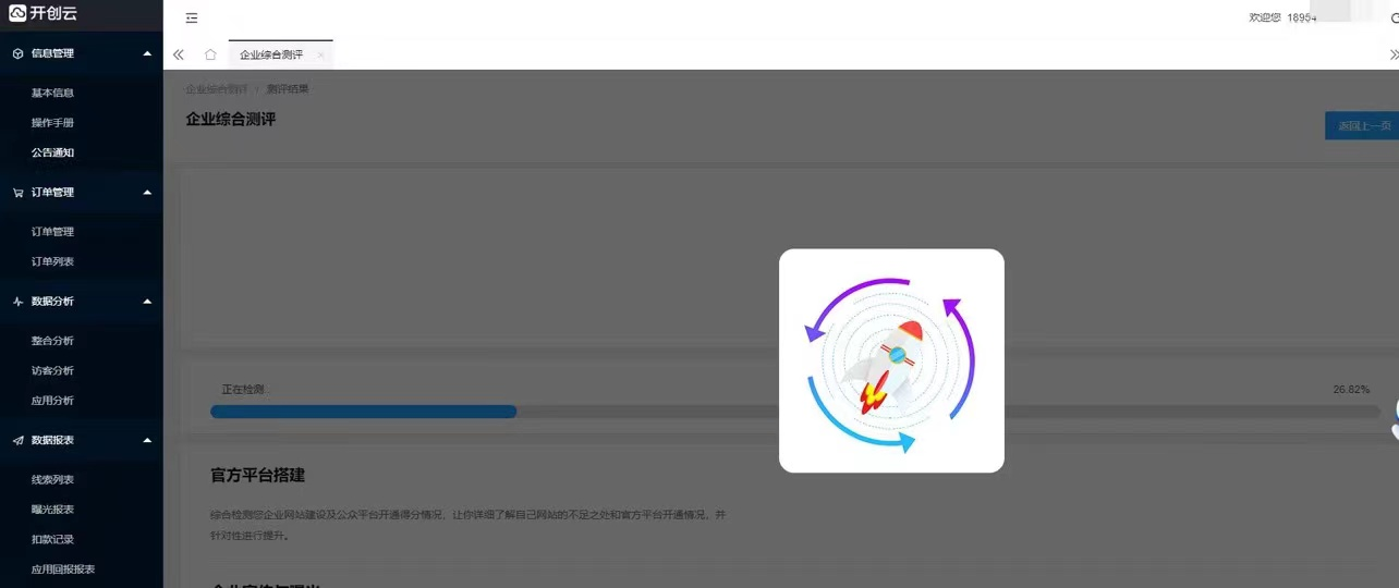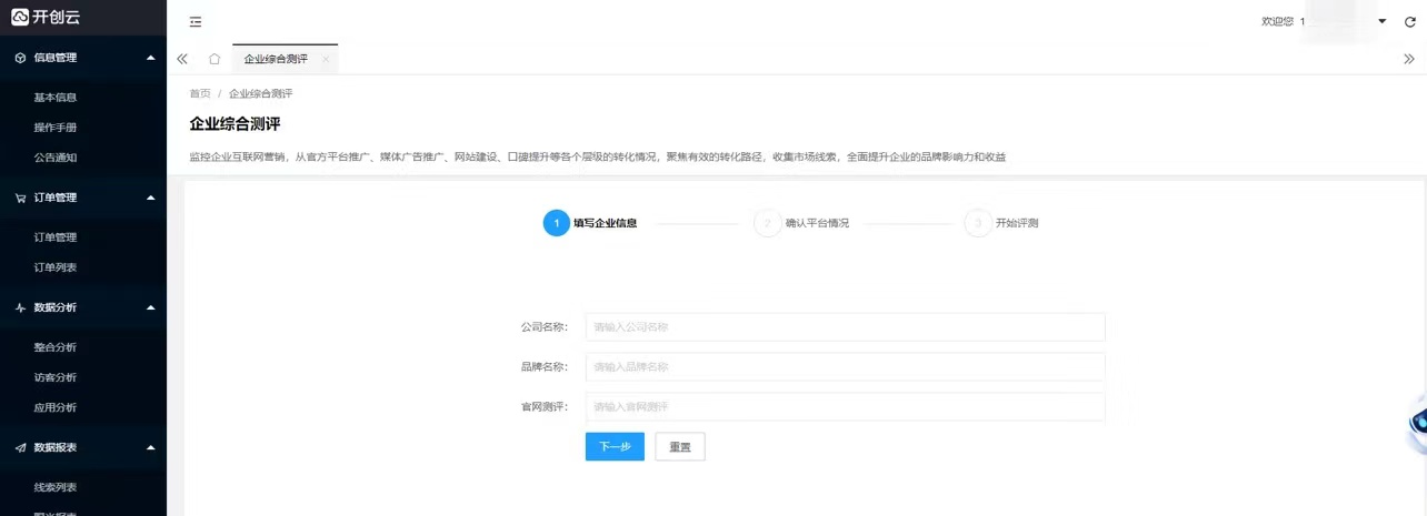 检测测评结果第一步打开企业综合测评,填写企业信息与网站。