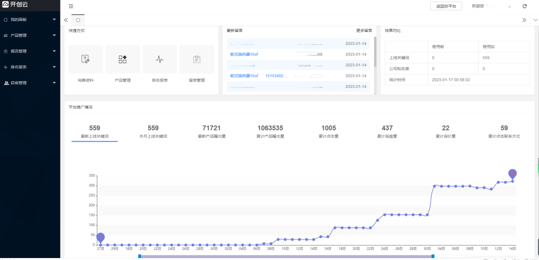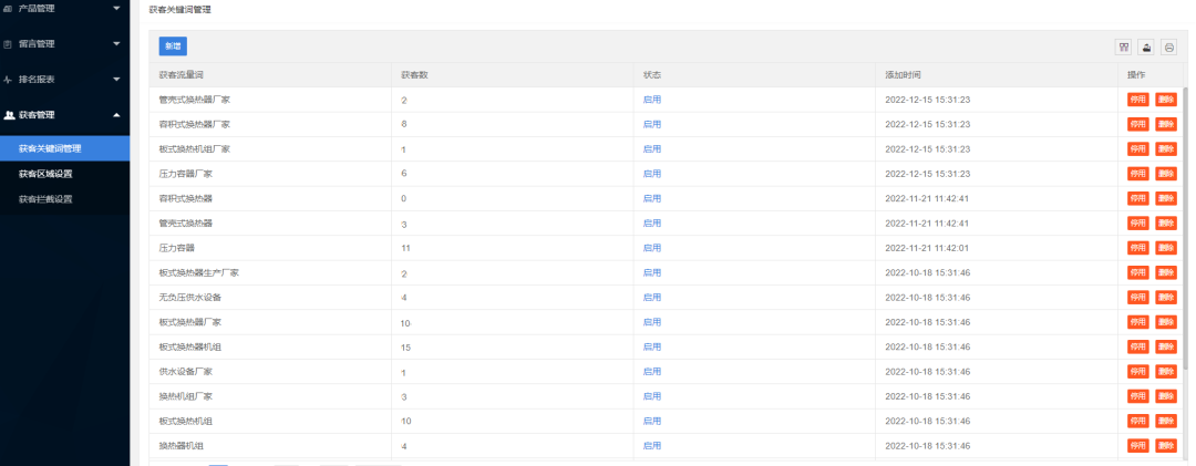 ■ 获客关键词管理,线索数量清晰可见