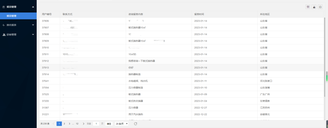 ■ 留言信息获取,便于二次营销转化