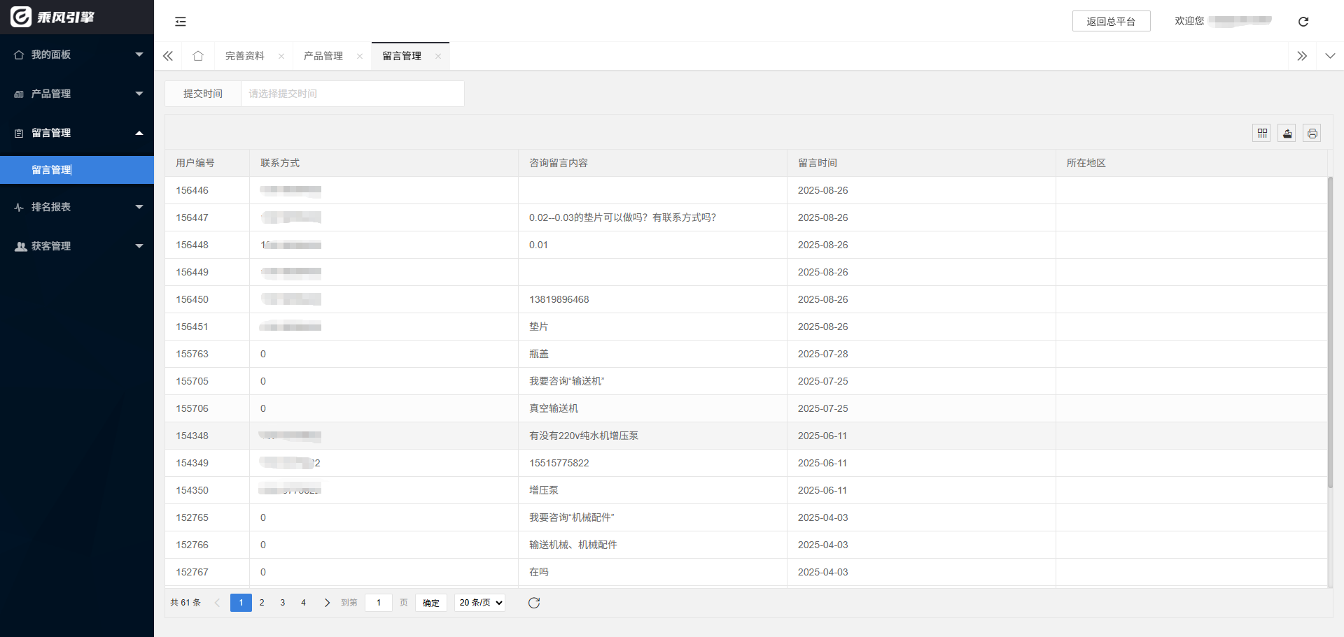 咨询留言