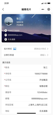 四、完善名片资料及展示
