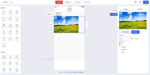 按住左侧“图片”组件拖动至中间手机模型画布,即可把组件添加至内容编辑区,在页面右侧内容管理一栏内点击“更新图片”即可替换组件内的图片,图片显示尺寸支持修改