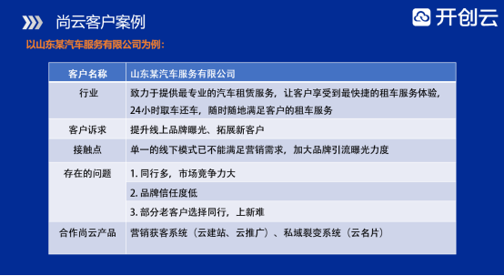 案例合作情况:营销获客系统(云建站、云推广)、私域裂变系统(云名片)